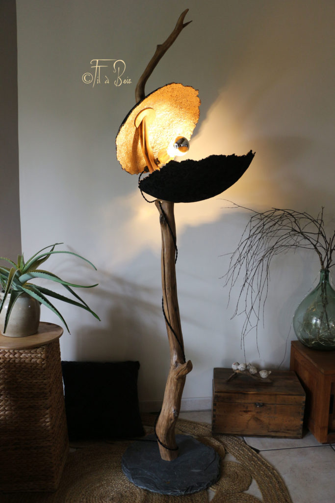 FIL A BOIS donne naissance à des lampadaires de toutes tailles, des lampes à poser ou des plafonniers qui viennent compléter avec brio un espace naturel, épuré, se fondant dans une ambiance zen, en apportant une touche unique de décoration .